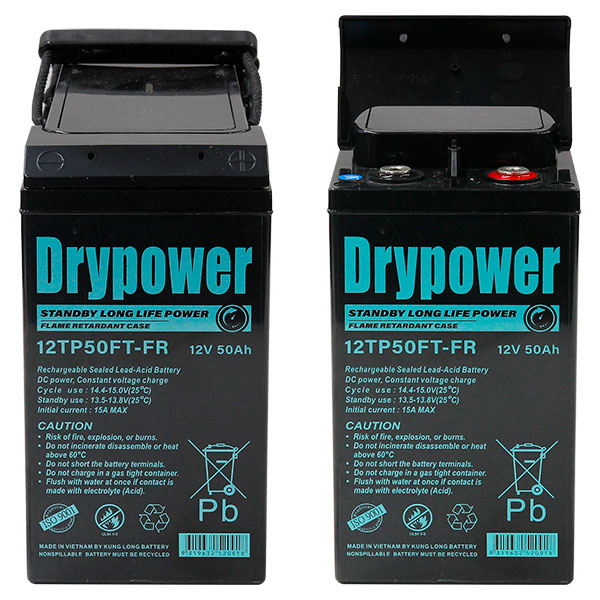 Drypower 12V 50Ah Long Life Standby Front Terminal AGM Battery - 12 Year Design Life